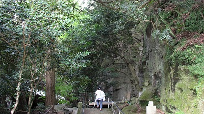 <<弥谷寺(いやだにじ):百八階段>> 四国霊場第71番札所 剣五山弥谷寺。 弥谷山(標高382m)の中腹225m辺りに本堂がある。 本堂までは、麓の駐車場からは540段の石段。 今日の行程のことも考えて、上の駐車場まで行くことにした。 それでも、残り108段の階段がある。さらにその先にも140段。 ただ、ここは手すりのついた、新しい階段なので、歩きやすい。 この下に昔の石段が残っているのだろうか。それとも、別の道が?
