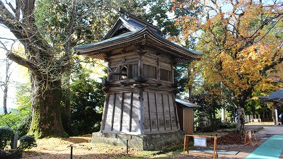 <<松尾寺:鐘楼>> 鐘楼の左に見えるのが、大イチョウの木である。 このイチョウは、鳥羽天皇が、元永2年(1119年)にお手植えされたものだという。 |